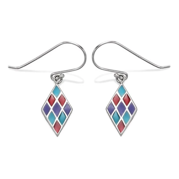 Silver Multi Coloured Diamond Shape Hook Wire Earrings - 18mm drop - F0849