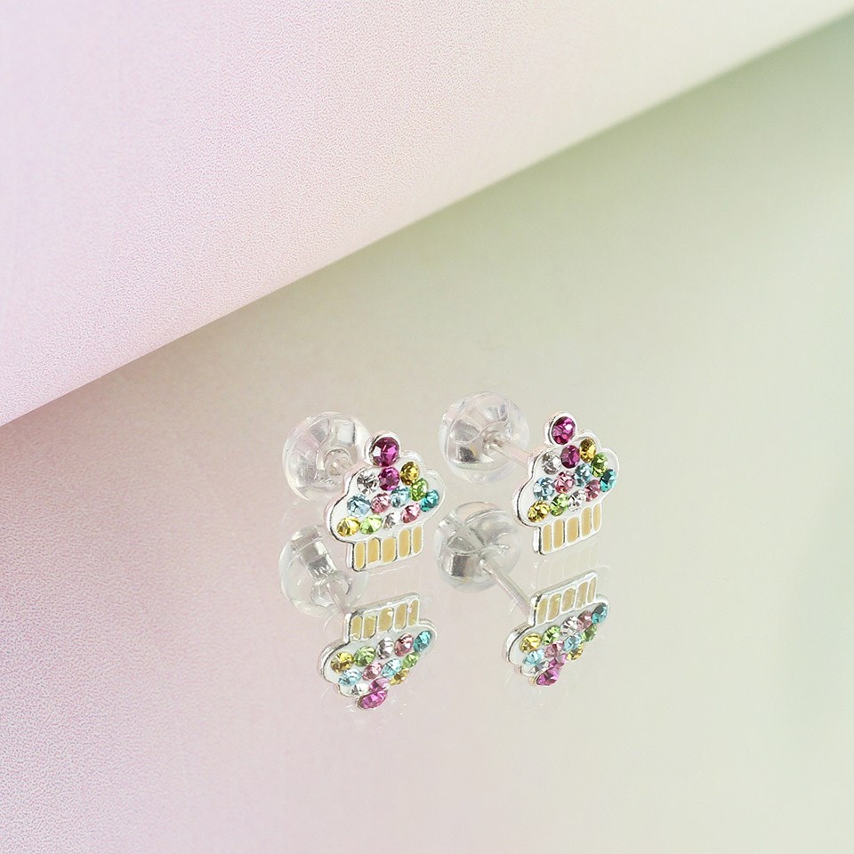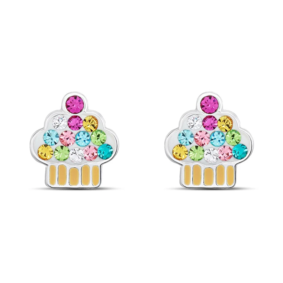 Silver Multi Crystal Cupcake Stud Earrings- 7mm - F04237