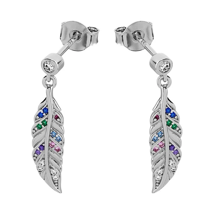 Silver Multi Cubic Zirconia Leaf Drop Earrings - 22mm drop - F11025