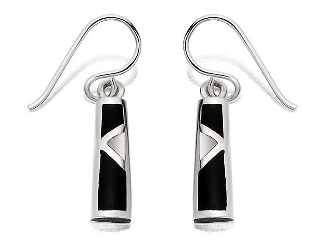 Silver Onyx And Mother Of Pearl Hook Wire Drop Earrings - F0851