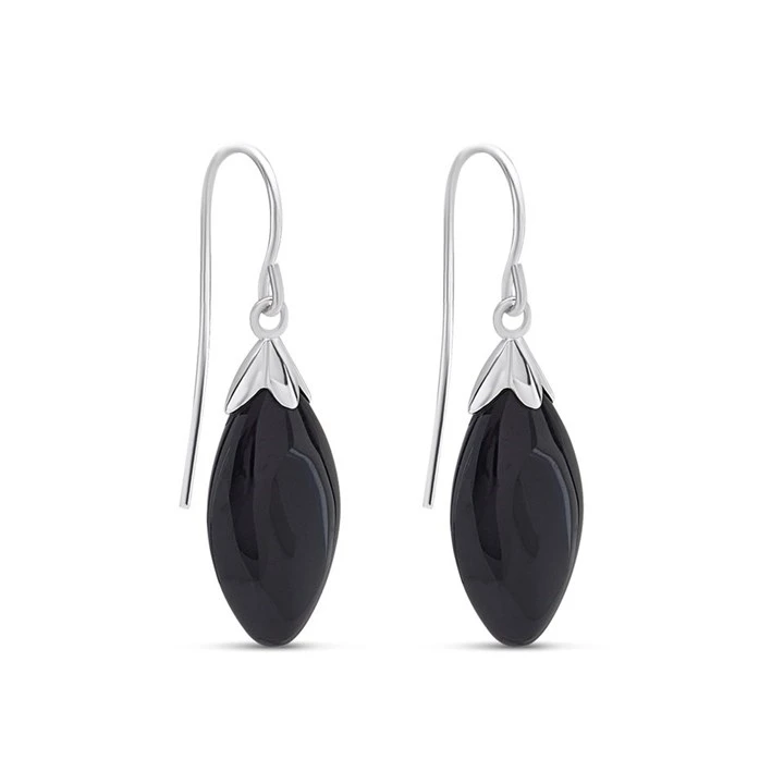 Silver Onyx Hook Wire Earrings - 32mm drop - F0739