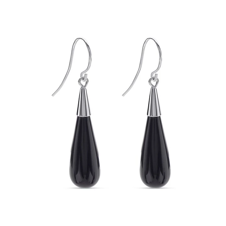 Silver Onyx Hook Wire Earrings - 39mm drop - F0738