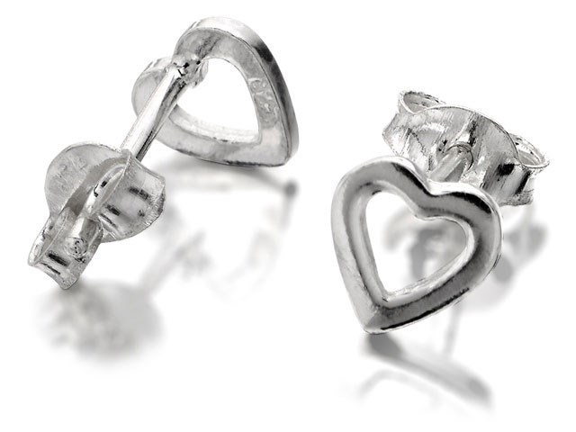 Silver Open Heart Stud Earrings - 5mm - F0124