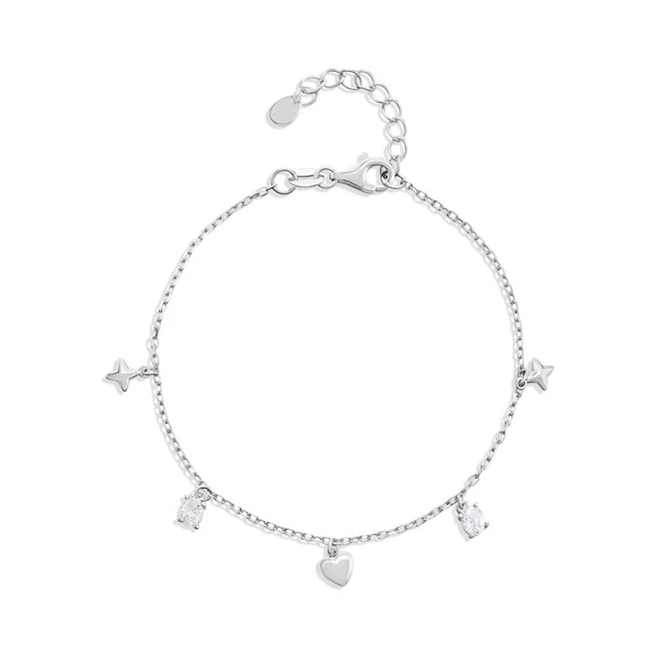 Silver Oval CZ Heart Star Charm Bracelet - F14205