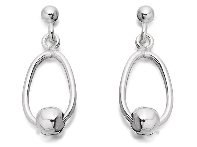 Silver Oval Loop Moving Bead Earrings - 18mm drop - F1063