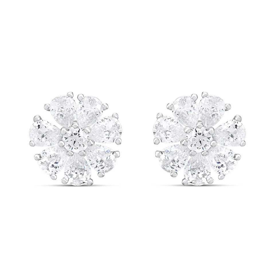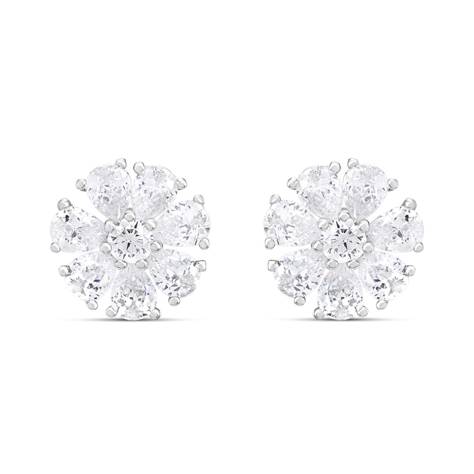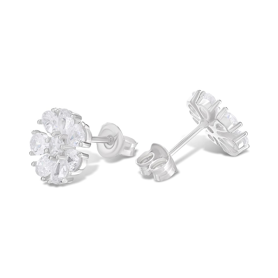 Silver Pear Cubic Zirconia Flower Stud Earrings- 10mm - F04222