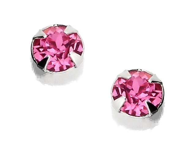Silver Pink Crystal Andralok Earrings - 3mm - F9913