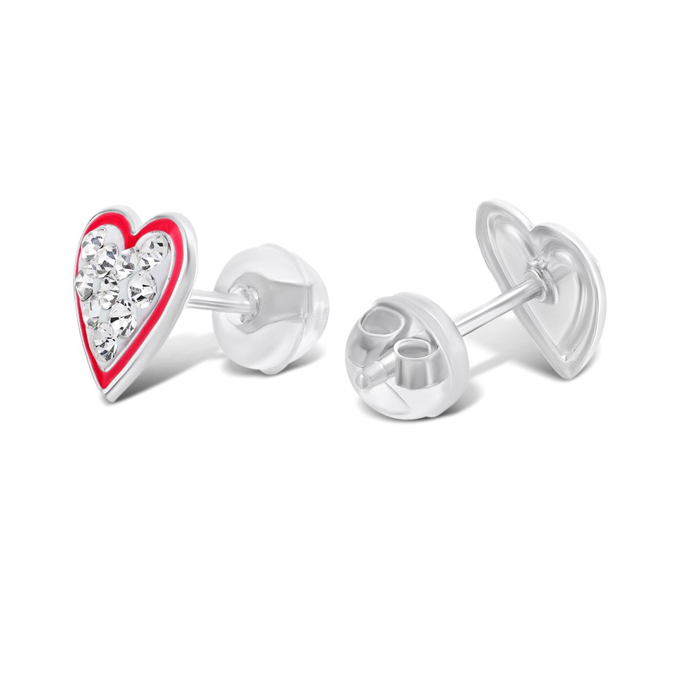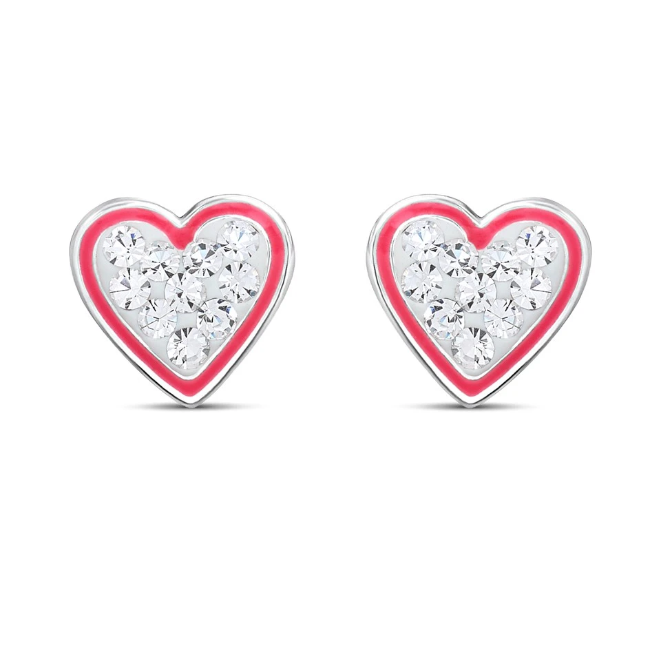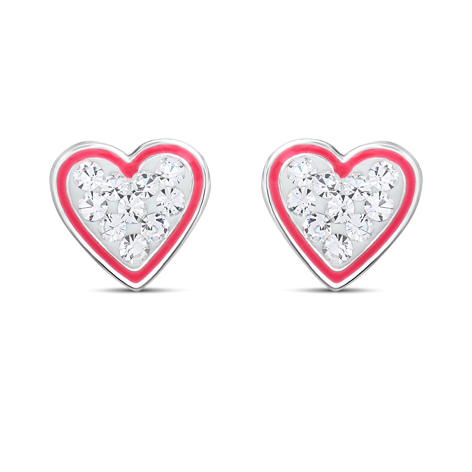 Silver Pink Crystal Heart Stud Earrings- 8mm - F04236