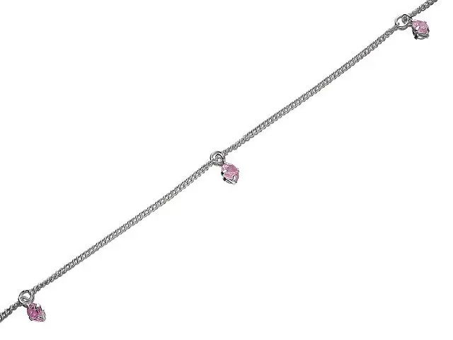 Silver Pink Cubic Zirconia Anklet - 10.5in - F2017