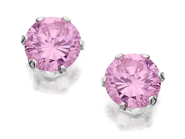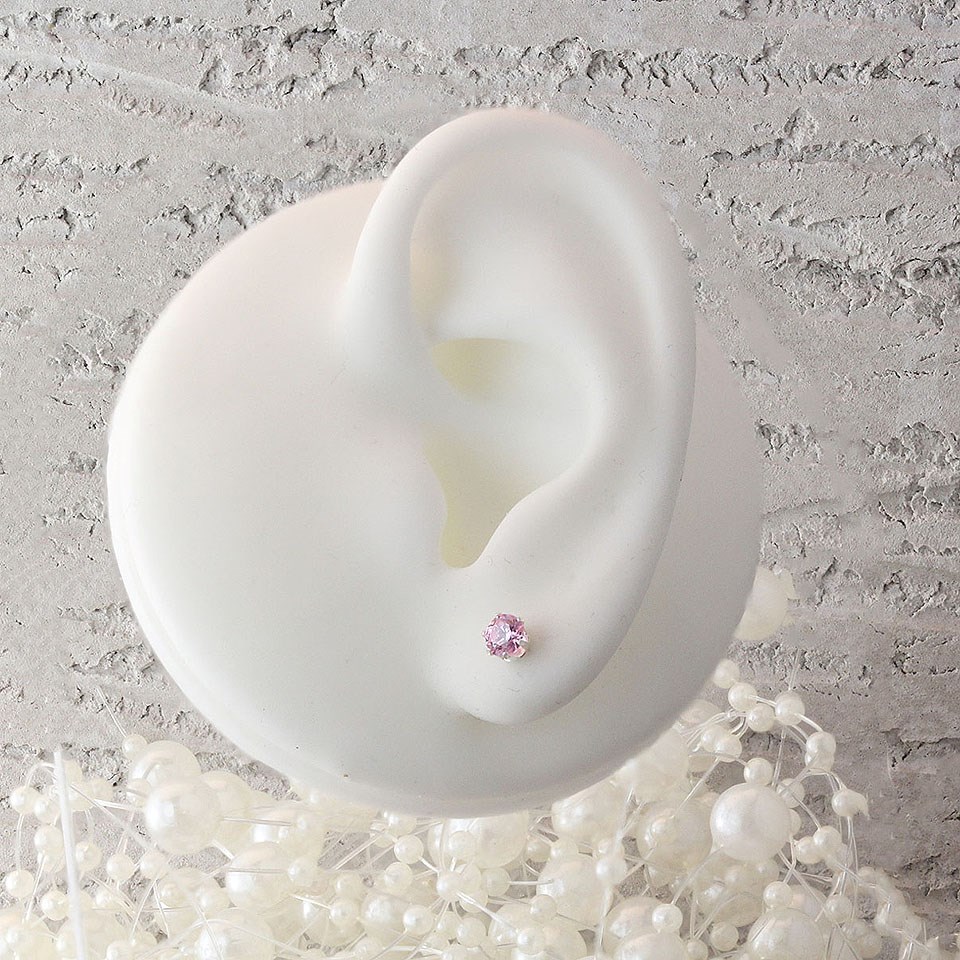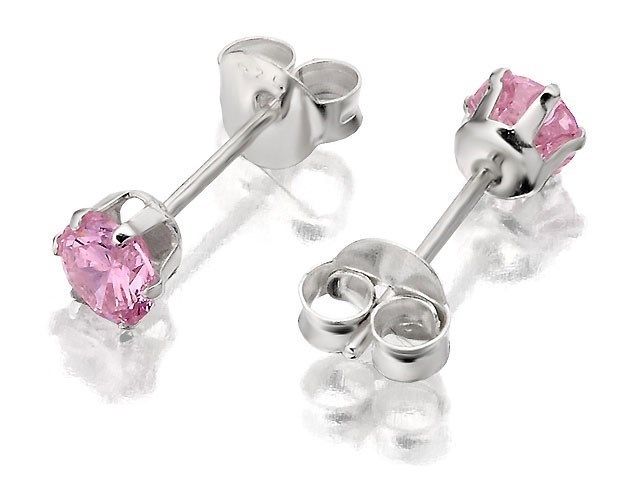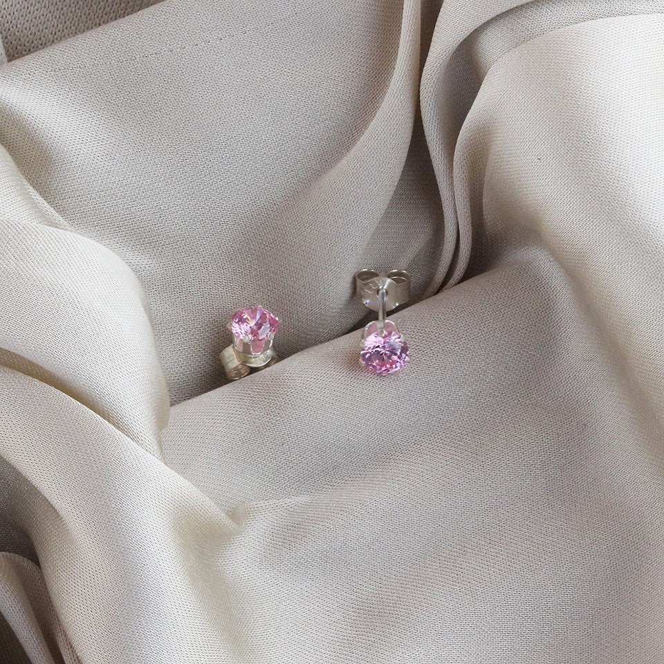 Silver Pink Cubic Zirconia Stud Earrings - 4mm - F0422