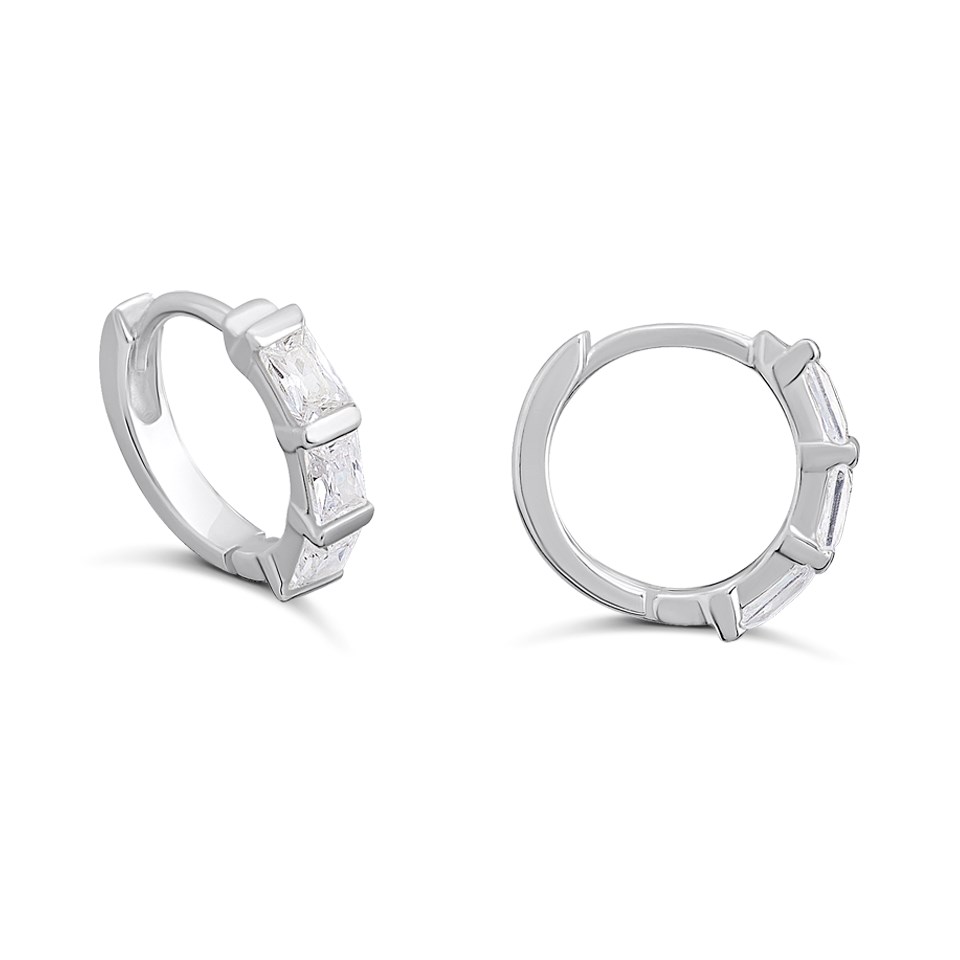 Silver Rectangle CZ Hoop Earrings- 12mm - F13179