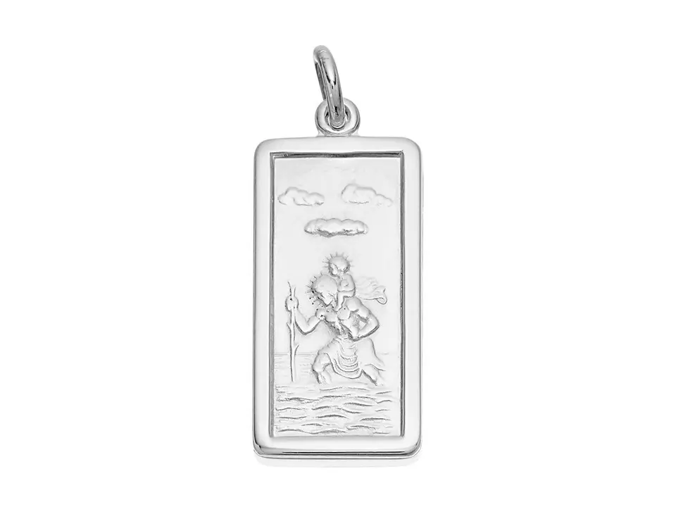 Silver Rectangular St. Christopher Medallion - 26mm - Z4036
