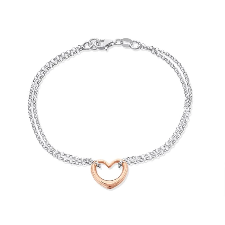 Silver Rose Tone Heart Bracelet - 7.5in - F14120