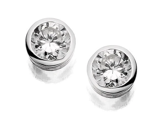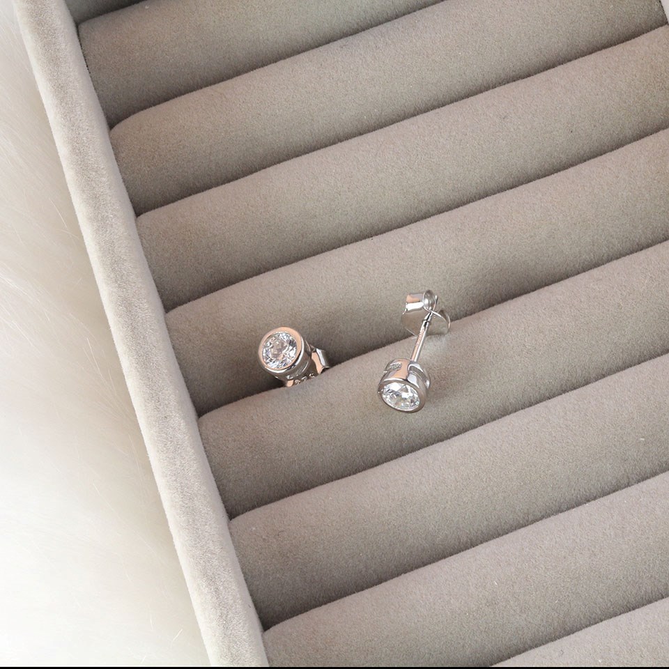 Silver Round Cubic Zirconia Earrings - 5mm - F0490