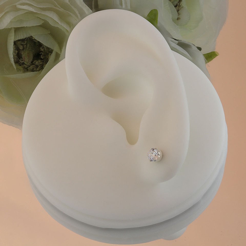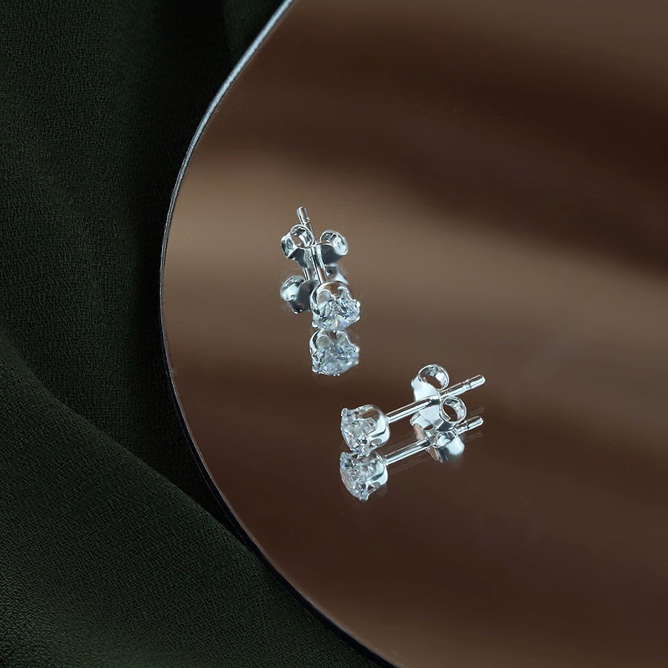 Silver Round Cubic Zirconia Stud Earrings - 4mm - F0484