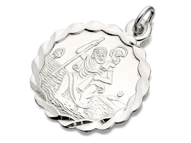 Silver Scalloped Edge Round St. Christopher Medallion - 18mm - F4721
