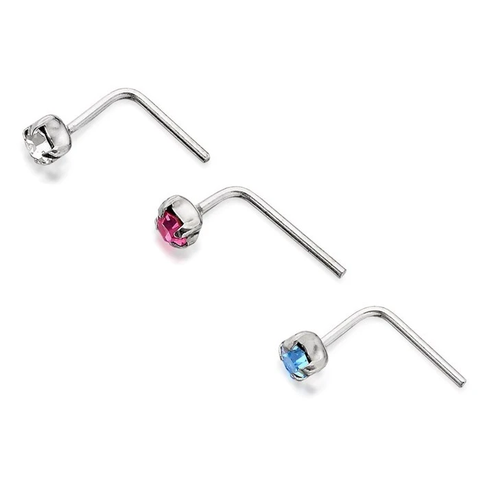 Silver Set Of 3 Crystal Nose Studs - F3246