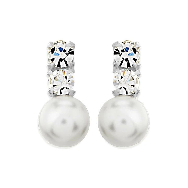 Silver Simulated Pearl And Crystal Stud Earrings - 13mm - F11023