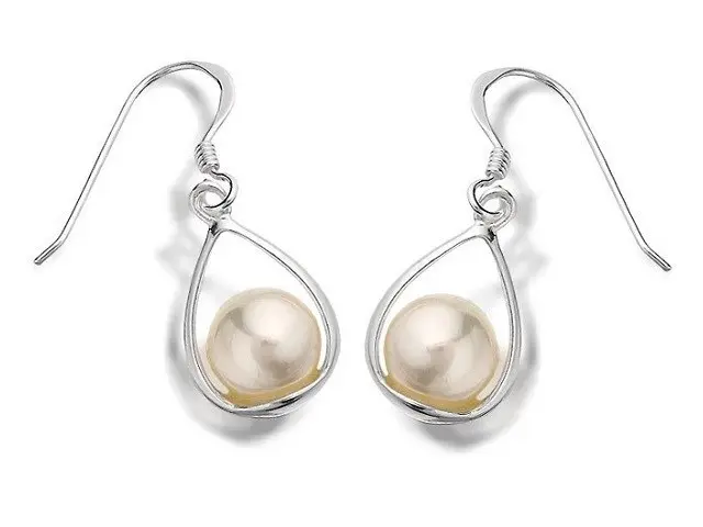 Silver Simulated Pearl Hook Wire Earrings - 28mm drop - F0785