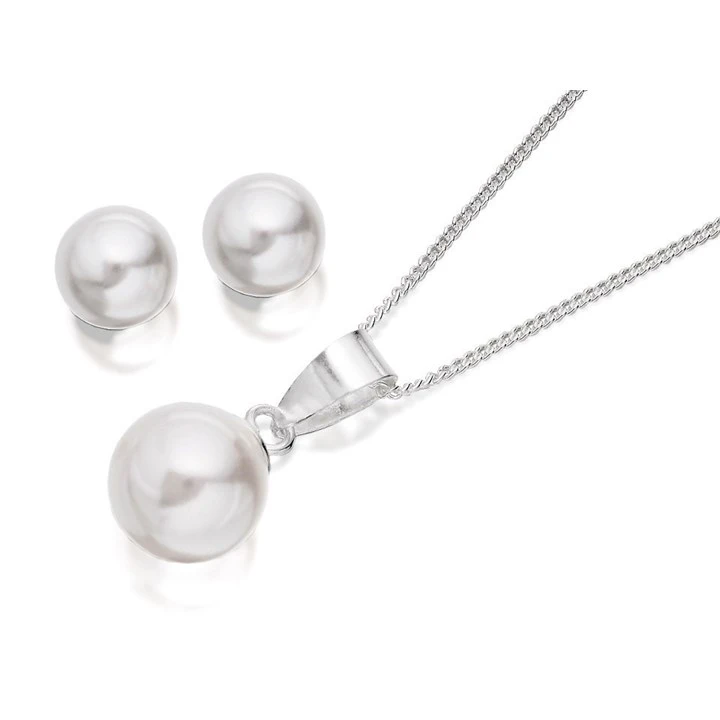 Silver Simulated Pearl Pendant And Earring Gift Set - F3181