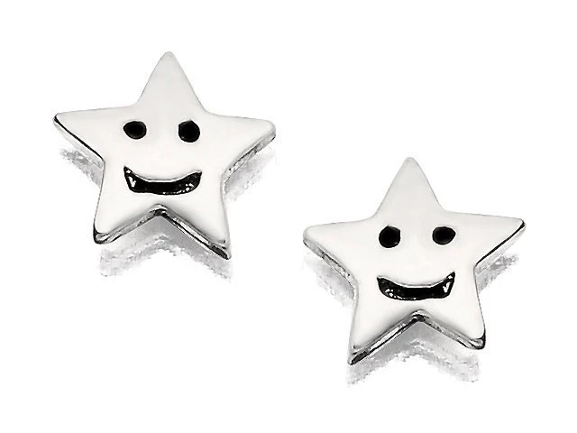Silver Smiley Star Stud Earrings - 5mm - F0131