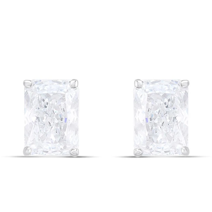 Silver Sparkle Cut CZ Rectangle Stud Earrings- 7mm - F04224