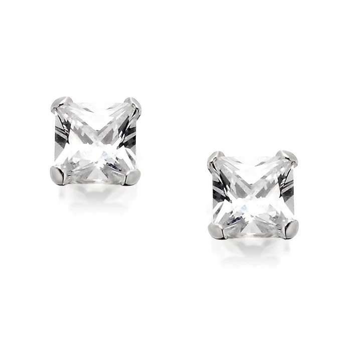 Silver Square Cubic Zirconia Andralok Earrings - 4mm - F9942