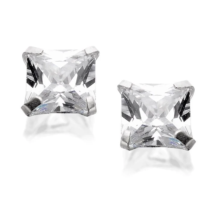 Silver Square Cubic Zirconia Stud Earrings - 5mm - F0308