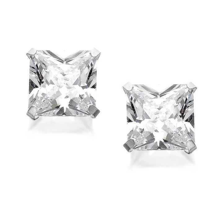 Silver Square Cubic Zirconia Stud Earrings - 8mm - F0320