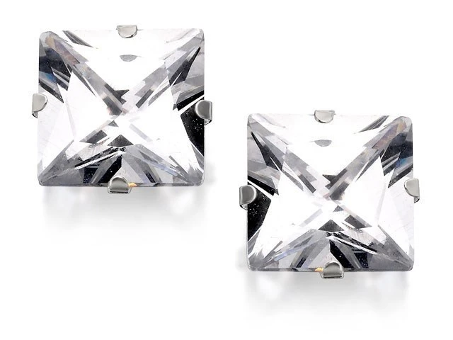 Silver Square Cubic Zirconia Stud Earrings - 9mm - F0362