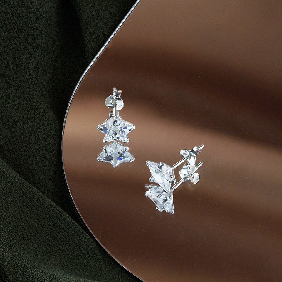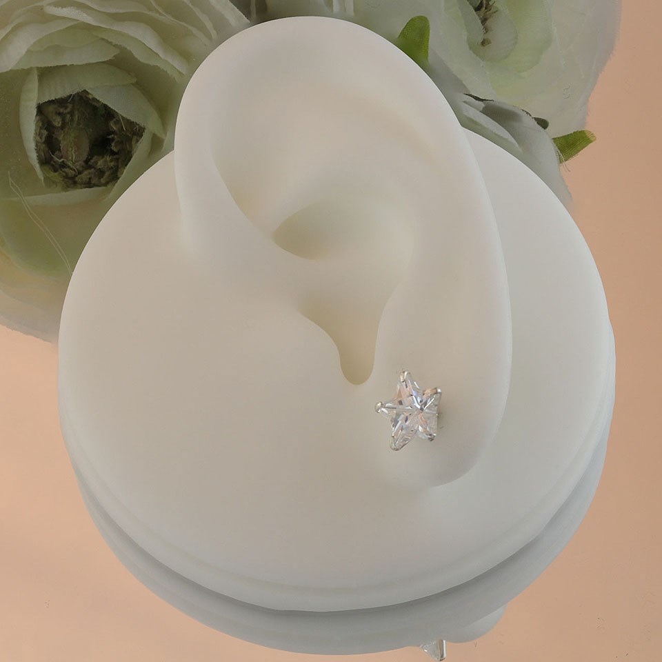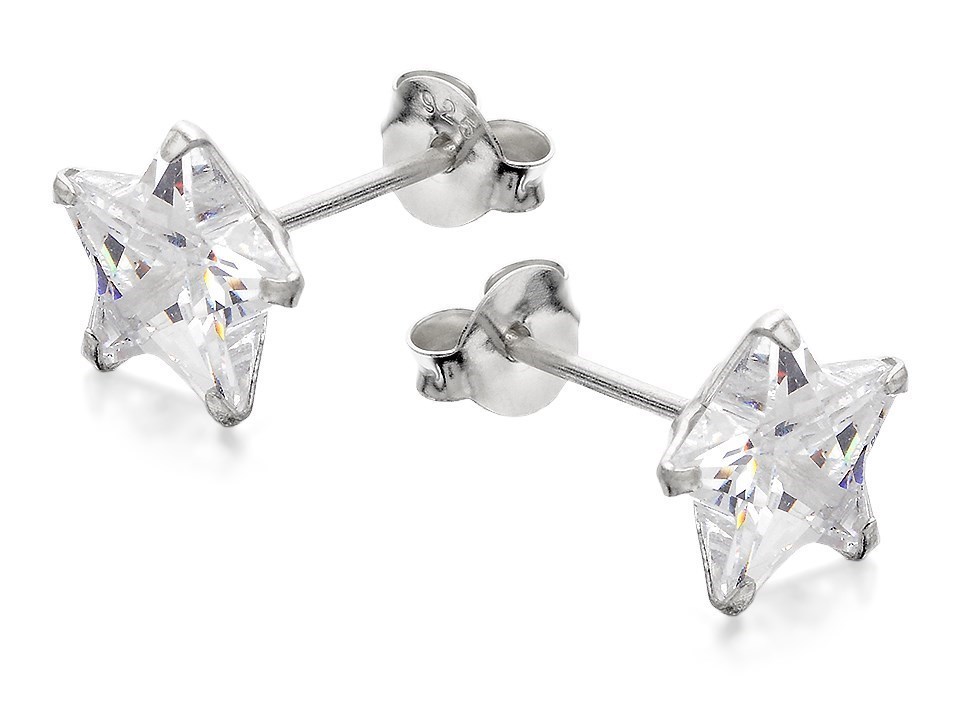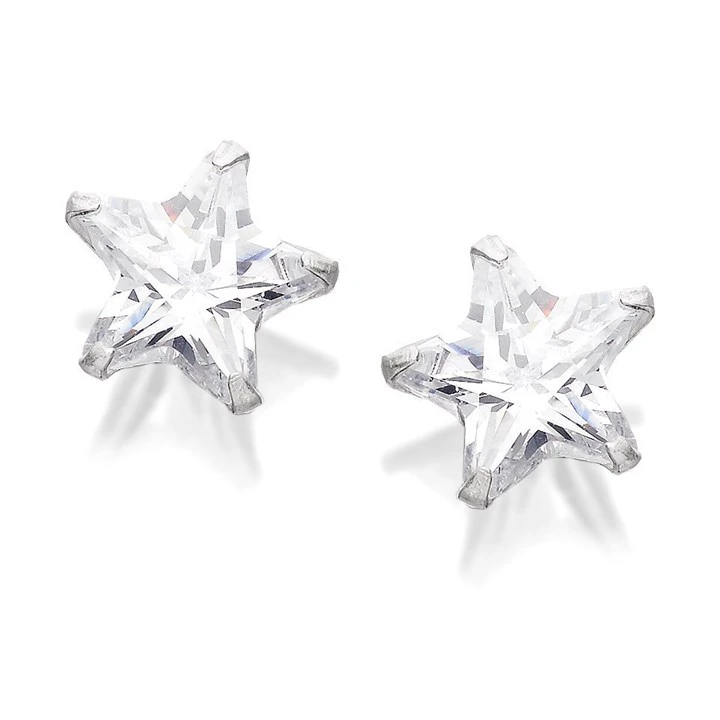Silver Star Cubic Zirconia Stud Earrings - 8mm - F0344