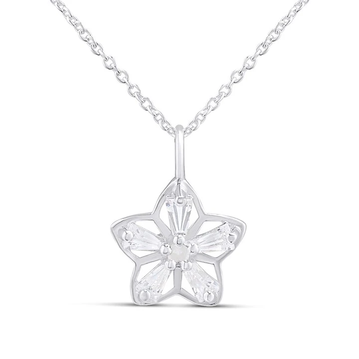 Silver Tapered Baguette CZ Flower Necklace - F33108