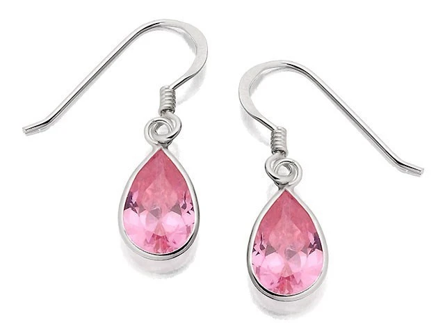 Silver Teardrop Pink Cubic Zirconia Hook Wire Earrings - F0747