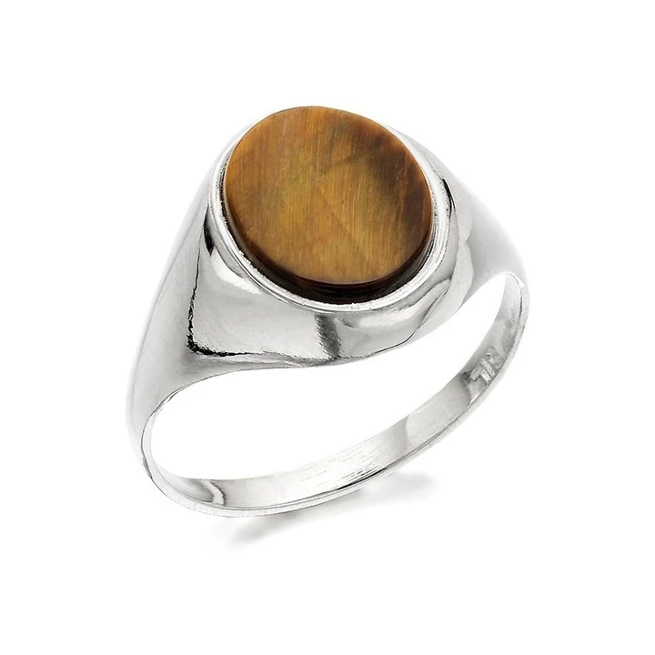 Silver Tiger's Eye Signet Ring - F5115