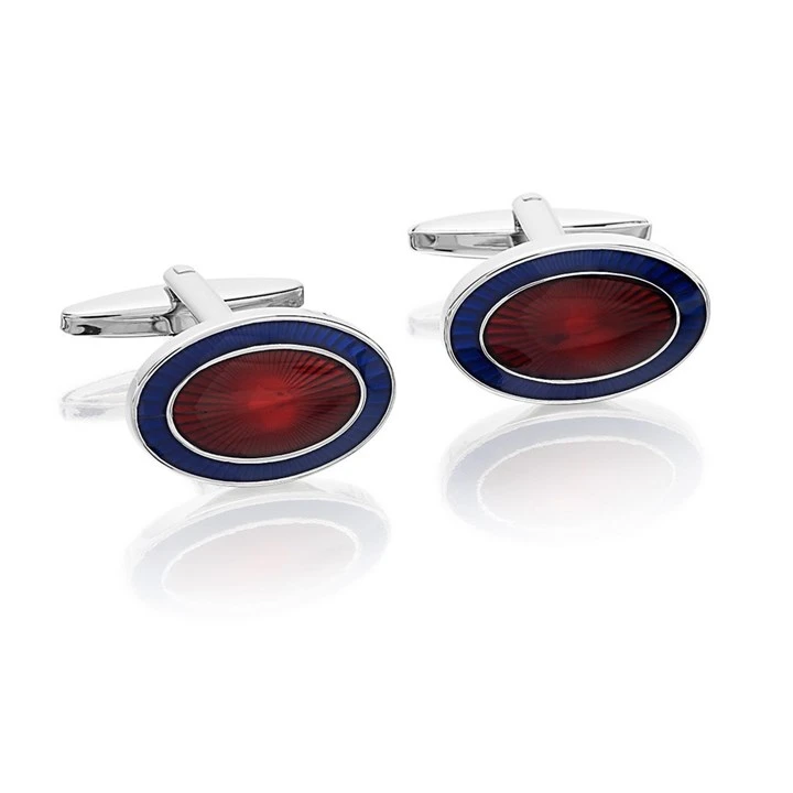 Silver Tone Navy Blue And Red Oval Cufflinks - A4584