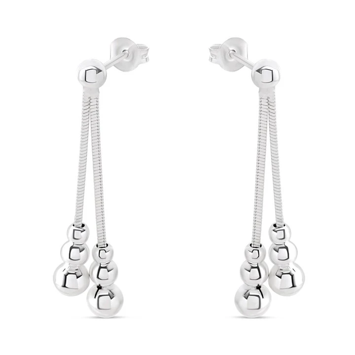 Silver Triple Ball And Snake Chain Drop Earrings - 40mm drop - F1126