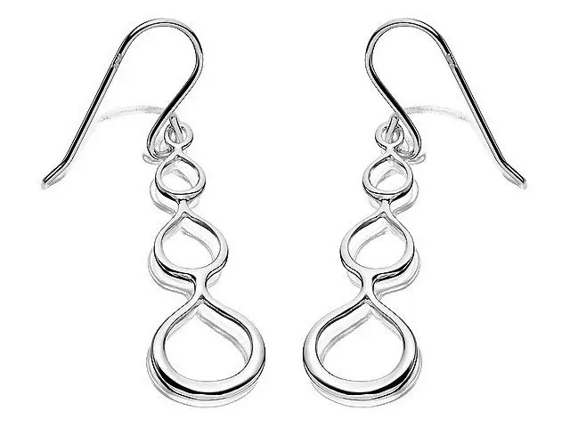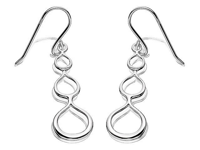 Silver Triple Loop Hook Wire Earrings - 30mm drop - F0649