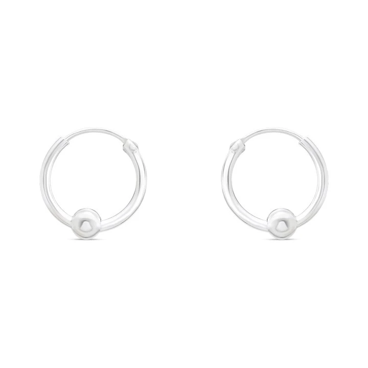 Silver Tube Hoop And Bead Earrings -13mm - F13023
