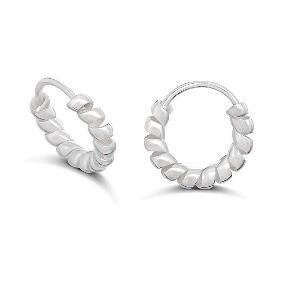 Silver Twist Huggie Hoop Earrings- 8mm - F13167