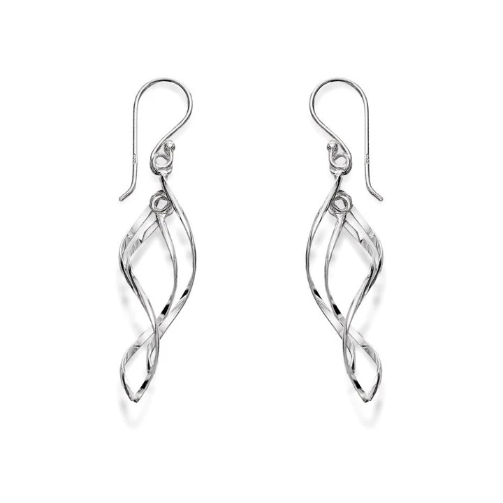 Silver Twisted Spiral Hook Wire Earrings - 50mm drop - F0537