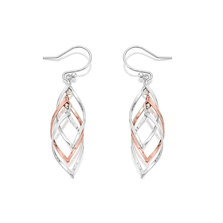 Silver Two Colour Twist Spirals Hook Wire Earrings - 38mm drop - F0575