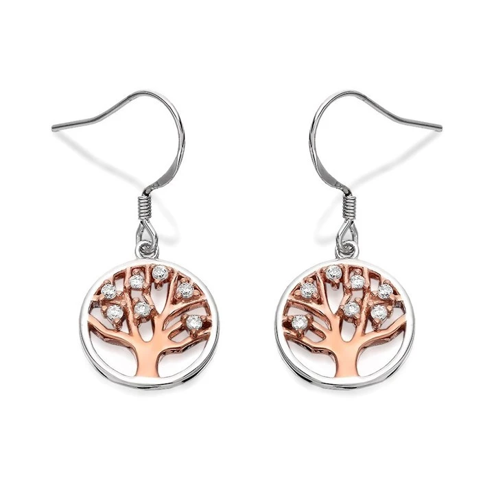 Silver Two Tone Cubic Zirconia F.Hinds Tree Of Life Hook Wire Earrings - 15mm drop - F0850