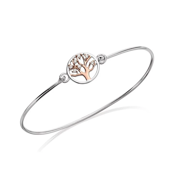 Silver Two Tone F.Hinds Tree Of Life Cubic Zirconia Bangle - F2709
