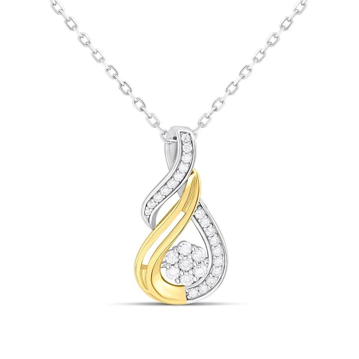 Silver Yellow Gold Plated Cubic Zirconia Cluster Twist Necklace - F35175