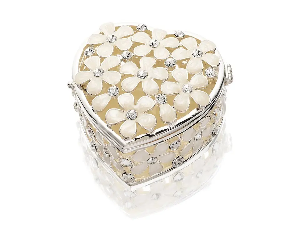 Sophia Flowers And Crystals Heart Trinket Box - P6043