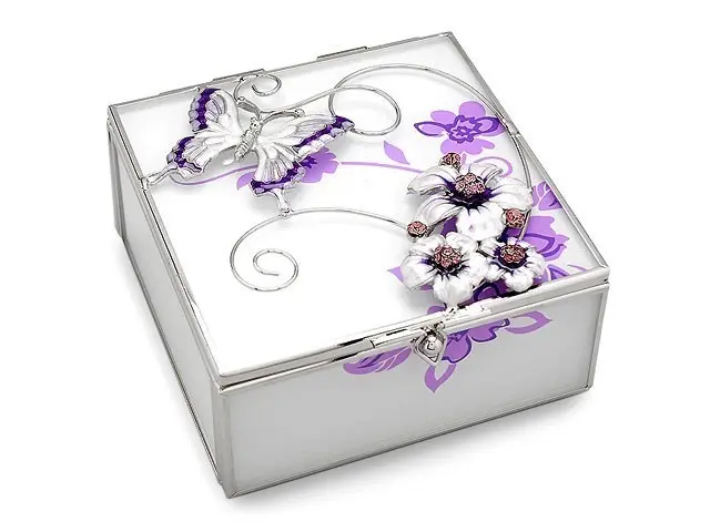 Sophia Purple Butterfly Glass Trinket Box - P6069