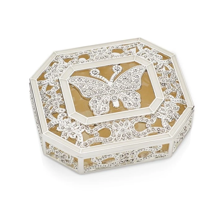 Sophia Silver Plated Crystal Butterfly Trinket Box - P6014