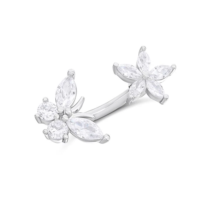 Steel Flower And Butterfly Crystal Belly Bar - J3508