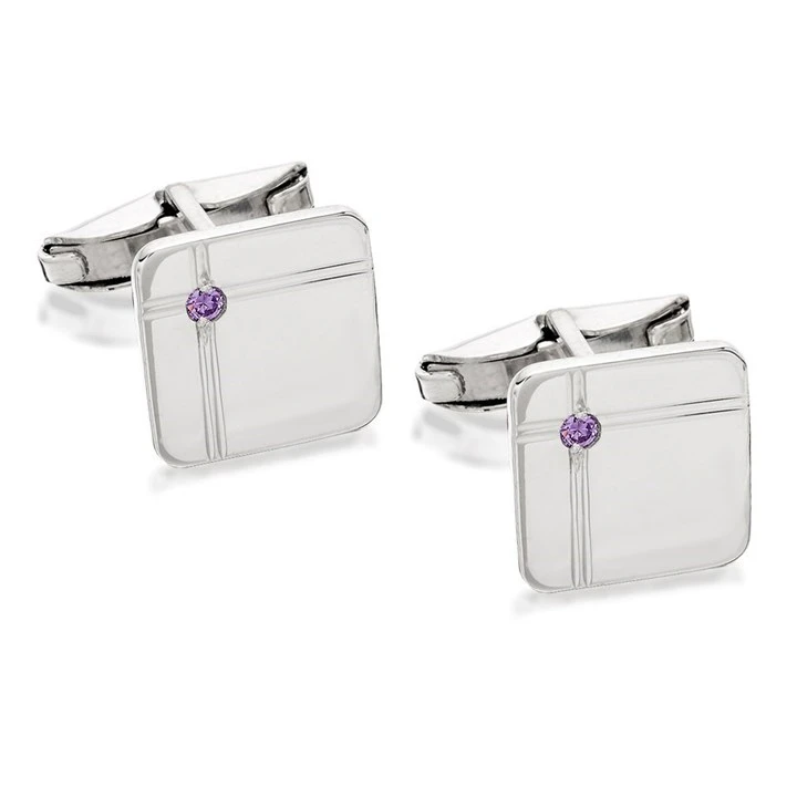 Sterling Silver Amethyst Cubic Zirconia Square Cufflinks - A5377