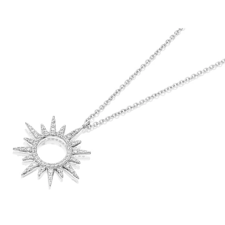 Sterling Silver Cubic Zirconia Sunburst Necklace - F3537
